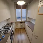 The apartment includes a balcony, a living room, and a fully equipped kitchen with climate control for utmost comfort.